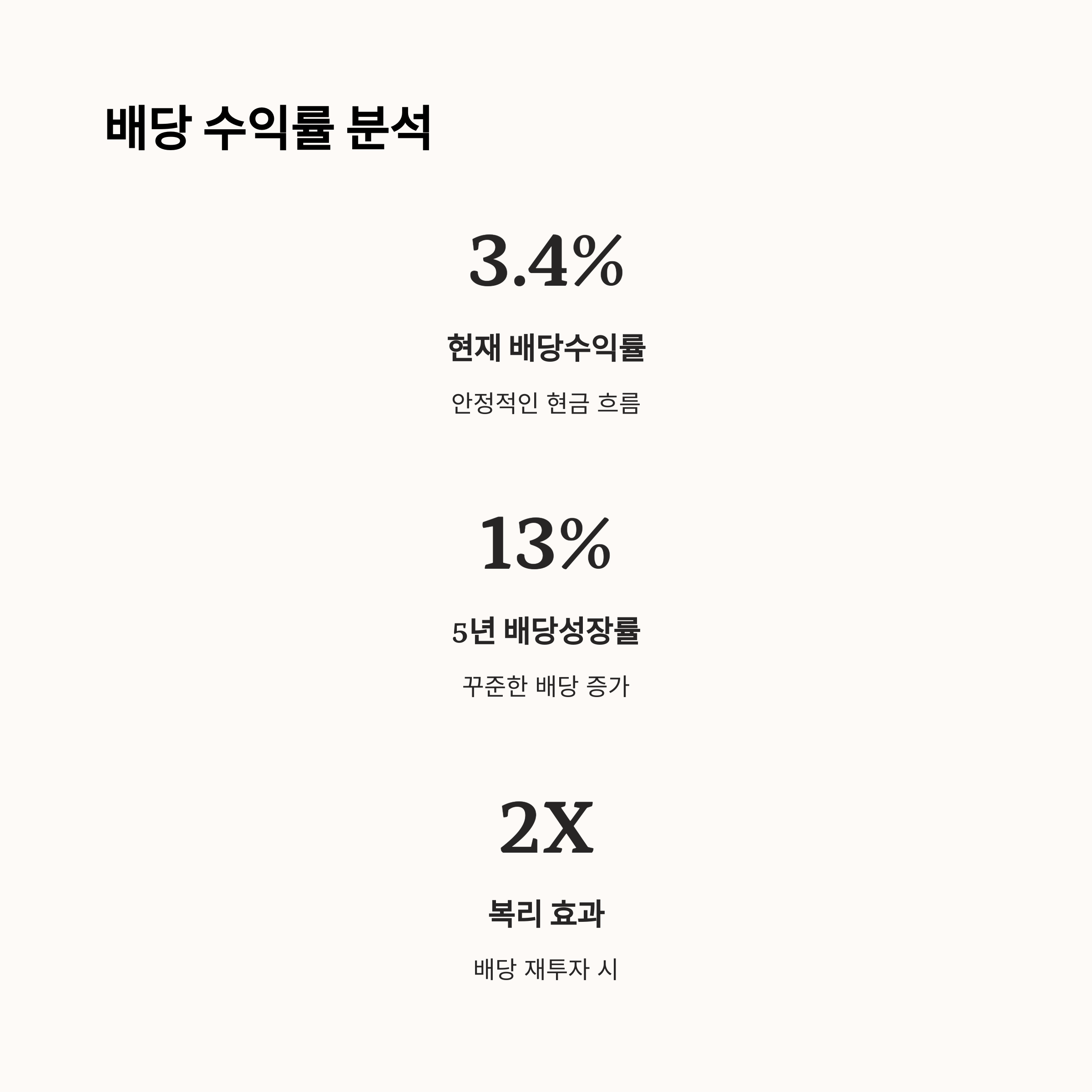 배당 성장률도 연평균 10%로, 장기 보유 시 놀라운 복리 효과를 기대할 수 있습니다.