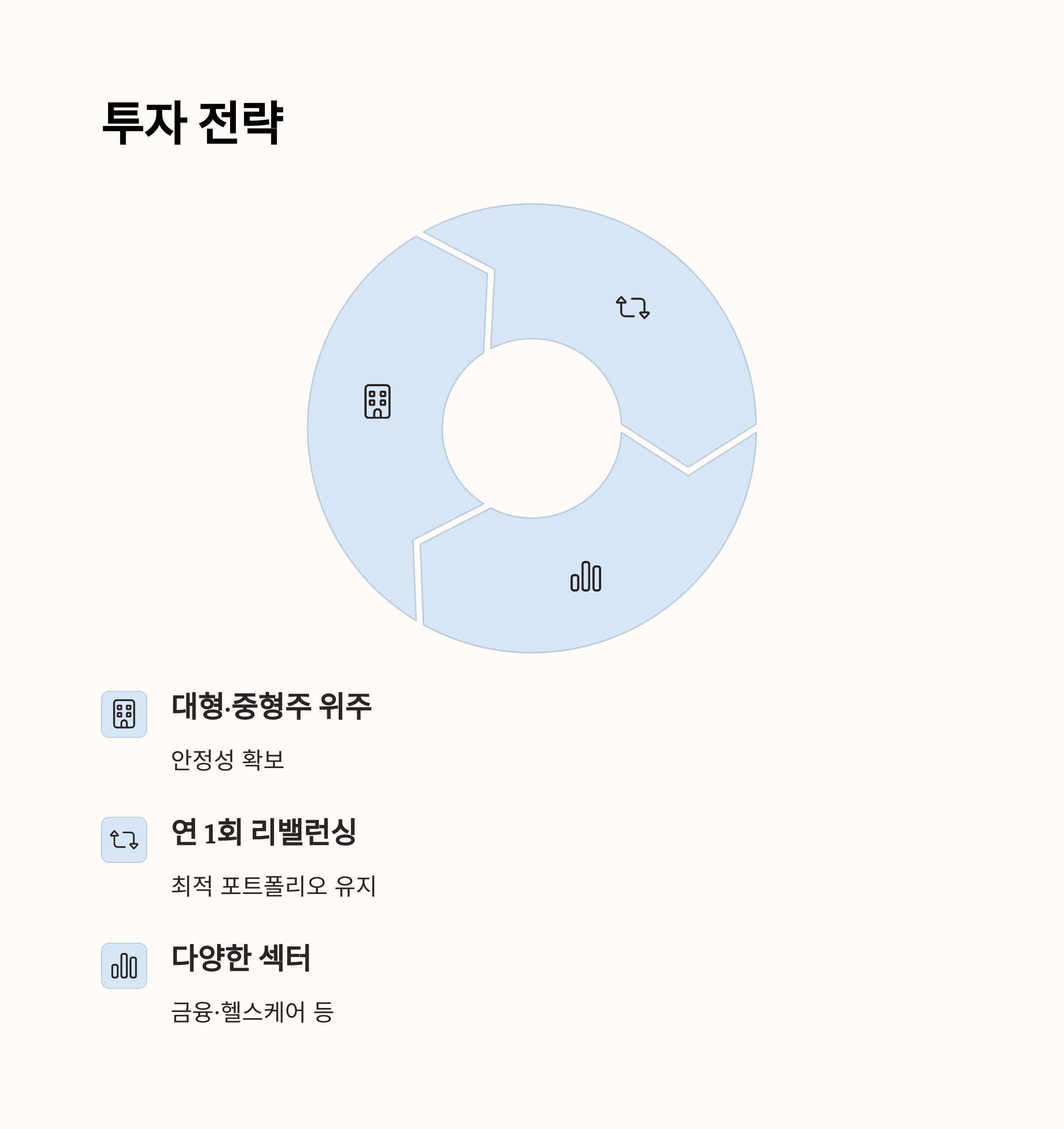 리밸런싱을 통해 주기적으로 포트폴리오를 재조정하여 안정성을 유지합니다.