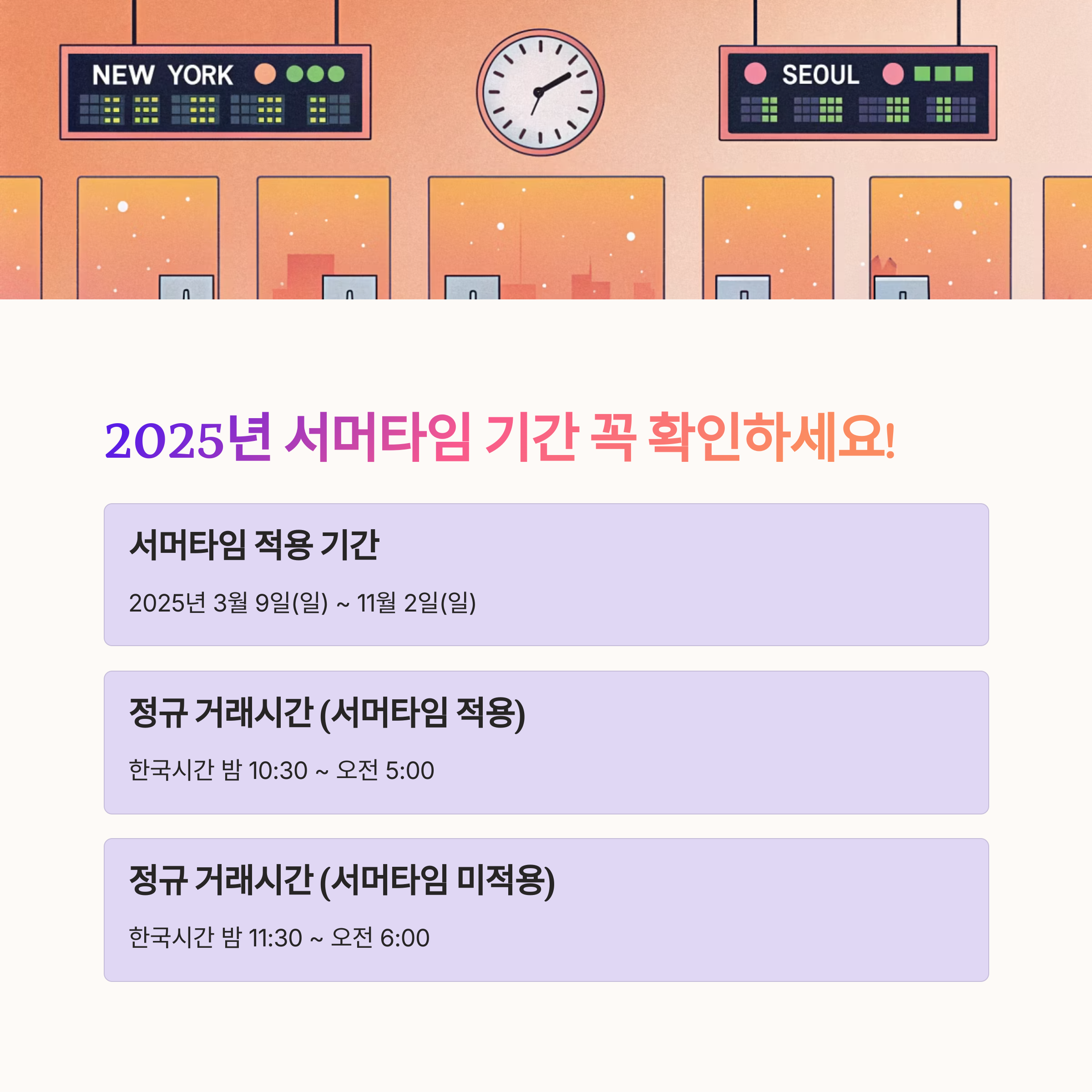 🕰️ 2025년 미국 증시 거래시간 & 서머타임 반영 시간