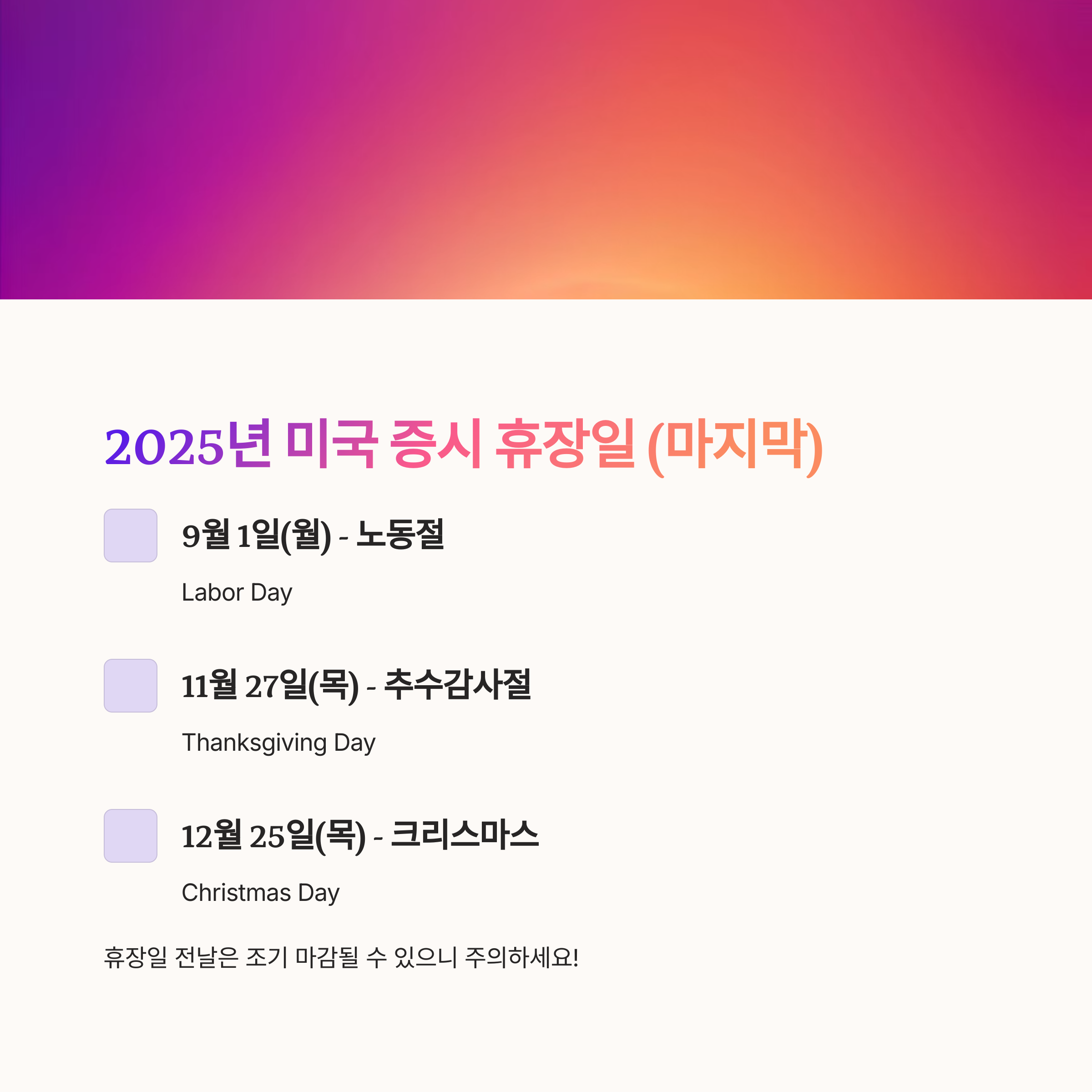 📅 2025년 미국 증시 휴장일 총정리 (공식 발표 기준)