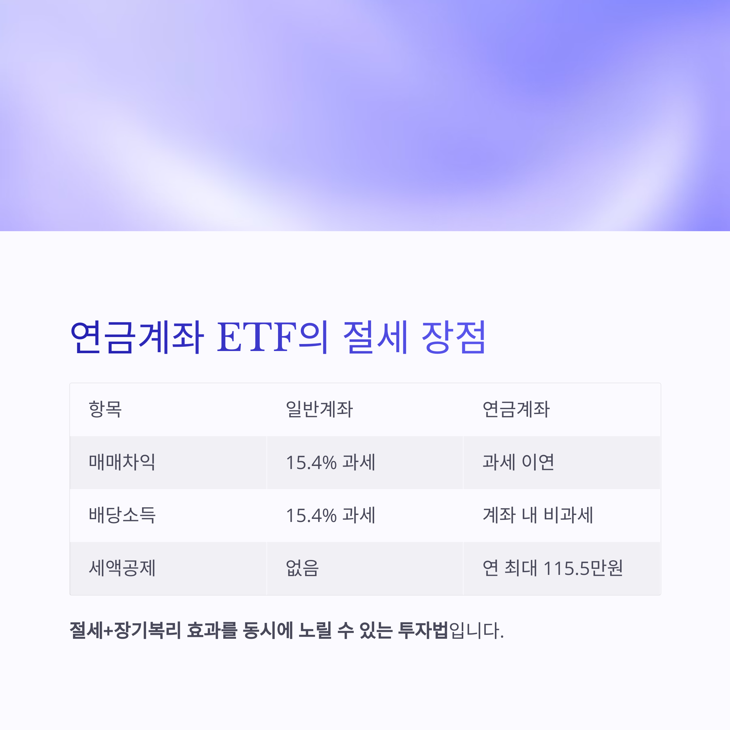 이처럼 "ETF는 장기 투자자에게 강력한 절세 도구"가 될 수 있습니다.