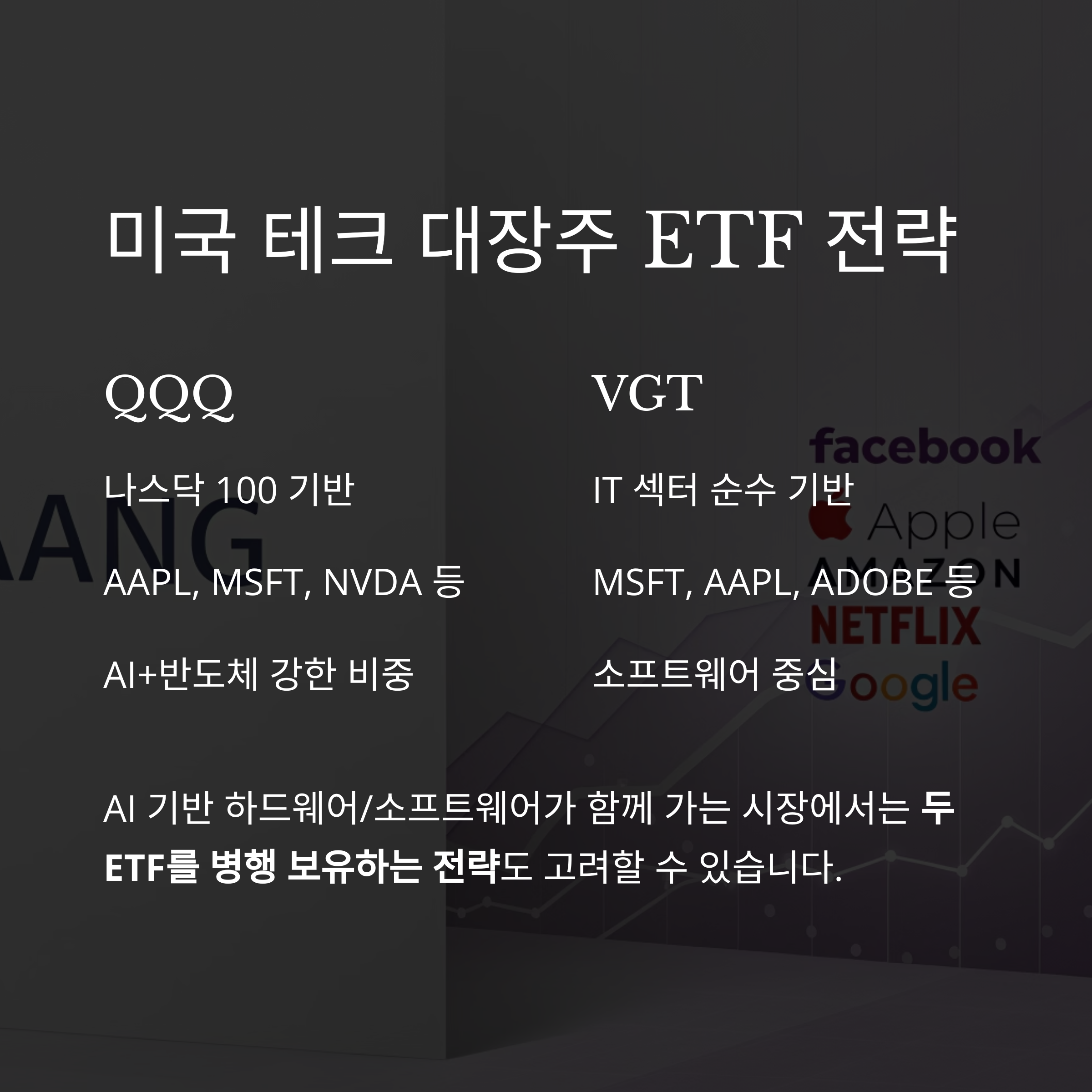 QQQ, VGT는 미국 기술주 대표 ETF입니다.